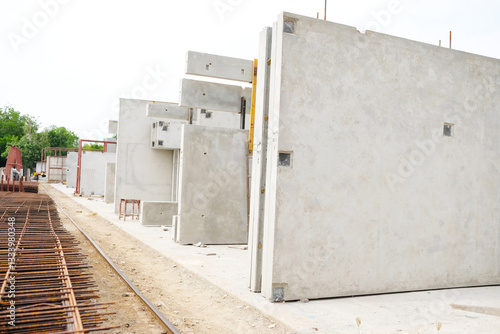 Precast concrete wall factory or precast concrete wall construction site.