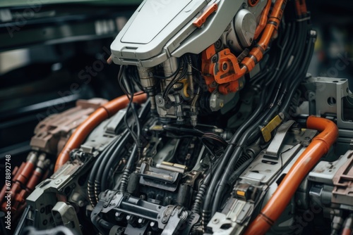 Precision Engine Close-Up: Detailed close-up of a high-tech mechanism, showcasing the intricate details of a powerful engine