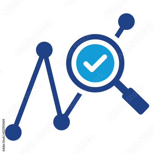 graph, magnifier, check, forecast, trend, insight, model, datum, analysis, pattern, decision, future, growth, accuracy, performance, icon, flat, illustration