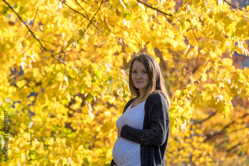 Pregnant woman in autumn
