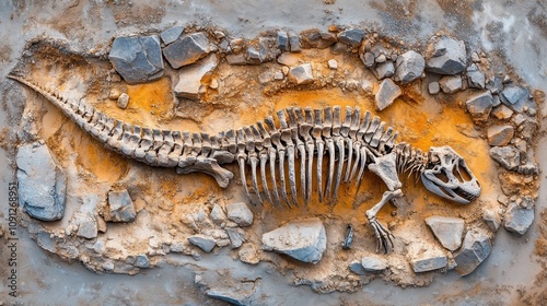 dinosaur, fossil, skeleton, bone, paleontology, geology, excavation, prehistoric, ancient, extinct, reptile, dig, discovery, science, research, earth, history, rock, stone, dirtied, sediment, land, terrain, wildlife, animal, nature, artifact, museum, exhibit, learning, education, earth science