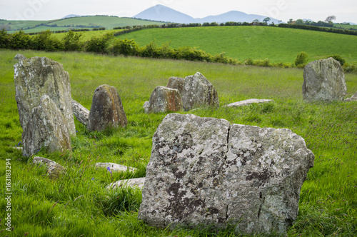 stone, grass, landscape, ancient, rock, blue, sky, nature, green, circle, field, rock, stone, england, wall, mountain, neolithic, rural, countryside, standing, ireland, northern ireland