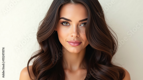 Premium hair dye showcases a woman with glossy, well-groomed dark hair, radiating confidence and style