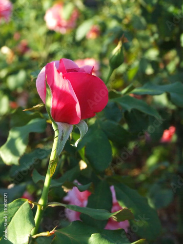 Pretty pink rose bud in garden near Brisbane