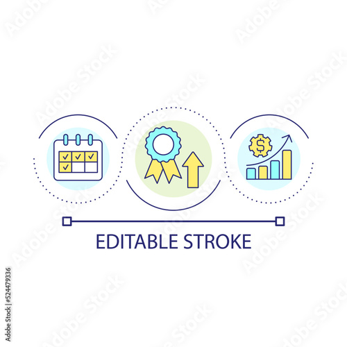 Price growing period loop concept icon. Uptrends at stock market. Value raising. Business abstract idea thin line illustration. Isolated outline drawing. Editable stroke. Arial font used