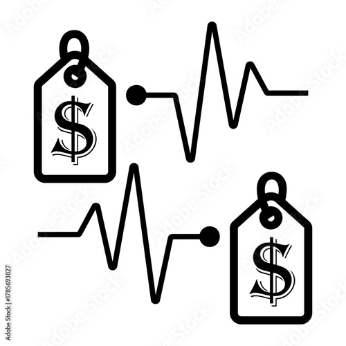 price, cost, market, marketing, money, label, price tag, arrow, icon, line, linear, outline, graphic, illustration