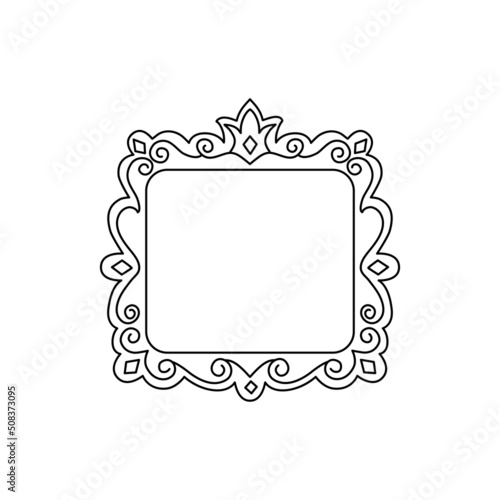 Princess frame. Royal mirror frame and majestic prince doodle border. Cute crown border. Outline vector illustration.