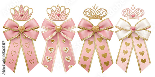 Princess Gift Ribbons PNG Set – Pink and Gold Fairy Tale Bows, Transparent Background