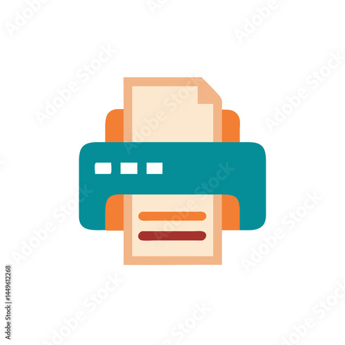 Printer icon in flat color style with printed documents for office and technology concepts