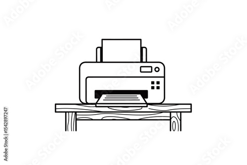 printer, printing, document, table, wood, desk, office, device, machine, paper, flat, vector, equipment, stationary, electronic, technology, icon, line, drawing, print, work, digital, simple, design, style, business, wooden, furniture, art, graphic, illustration, symbol, element, surface, monochrome, closeup, indoor, computer, information, tool, communication, black, white, single