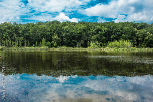 lake, water, sky, landscape, river, nature, summer, forest, tree, blue, cloud, tree, green, cloud, grass, outdoors, view, duck pond, tranquil, park, scene, beauty, day, calm