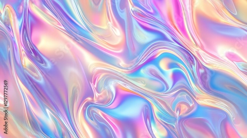 prismatic foil background with swirling waves of iridescent light, reflecting a mesmerizing blend of neon and pastel colors
