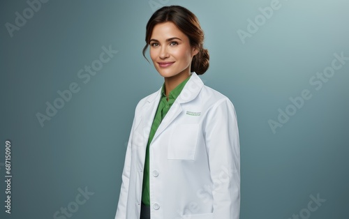 Professional Female Doctor in White Lab Coat with Green Scrubs Portrait