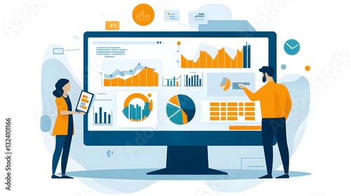 Professional illustration of web analytics analysis on isolated background for data analysis purposes