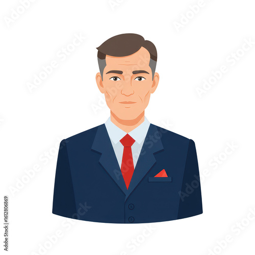 Professional male avatar in a business suit and red tie, used for corporate profiles, management, or leadership representations.