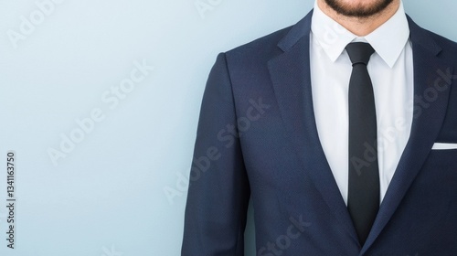 business, suit, attaching, professional, man, formal, attire, portrait, corporate, confidence, elegance, style, fashion, male, groomed, posh, clean, image, photogenic, workplace, presentation, career, meeting, office, serious, executive, upper, body, appearance, sophistication, model, smart, relaxed, neutral, blue, background, analysing, organic, traffic, report, computer, minimalistic, negative, space, text, concept