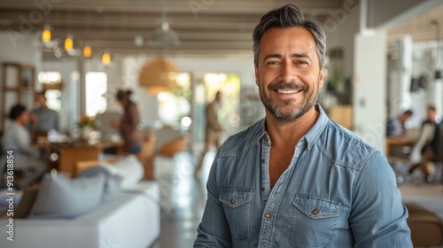 man, office, modern, smiling, professional, colleague, meeting, contemporary, sunlight, furniture, late afternoon, casual attire, friendly, business, energetic, teamwork, interaction, confidence, casual attire, welcoming, atmosphere, interior design, creativity, productivity, workspace, architecture, corporate, people, engagement, diverse, laptop, technology, lifestyle, communication, collaboration, idea, networking, inspiration, ambience, relaxed, brainstorming, co-worker, digital, success, innovation, entrepreneur