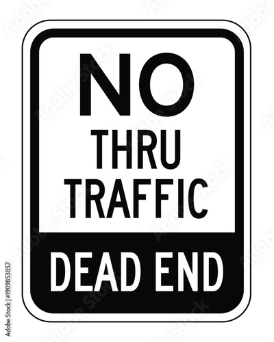 Professional Monochrome No Thru Traffic Dead End Sign – Minimalist Regulatory Road and Facility Signage Vector