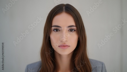 Professional Portrait of a Confident Young Woman with Brown Hair and Brown Eyes Against a Neutral Background For Business and Lifestyle Concepts