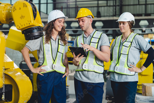 professional technician engineer with safety helmet hard hat working in industrial manufacturing factory, men at work to checking equipment of machinery production technology or construction operating