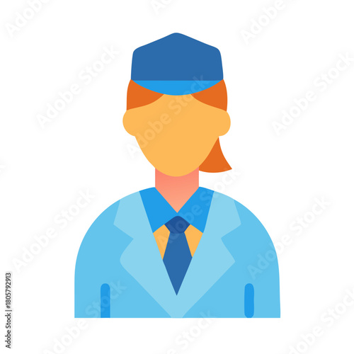 woman, professional, uniform, icon, hostess, blue, orange, attaching, hat, service, business, graphic, illustration, avatar, person, job, employee, flight attendant, travel, work, staff, occupation, modern, user, shape, geometric, style, simple, minimalist, clip art, symbol, silhouette, logotype, element, corporate, clean, elegant, formal, human