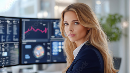 businesswoman, financial, analysis, datum, monitor, professional, office, chart, confident, technology, economy, finance, woman, corporate, strategy, investment, digital, workplace, expertise, market, business, leadership, success, career, modern, sharpened, entrepreneur, growth, planning, innovation, management, decision, making, executive, productivity, intelligence, solution, insight, performance, computer, people, person, cyberspace, work, looking, job