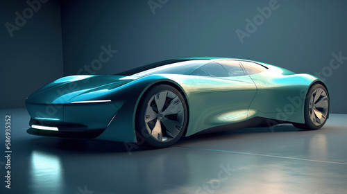 Prototype d'automobile électrique à caractère sportif et futuriste, design épuré, vitres fumées, grande jantes aluminium, carrosserie carbone
