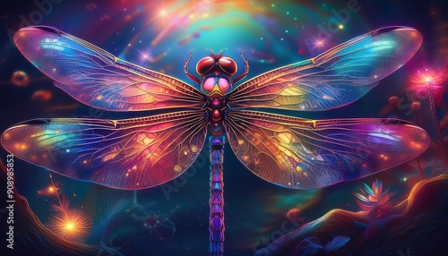 Psychadelic theme Dragonfly. Spirit Animal totem guide illustration