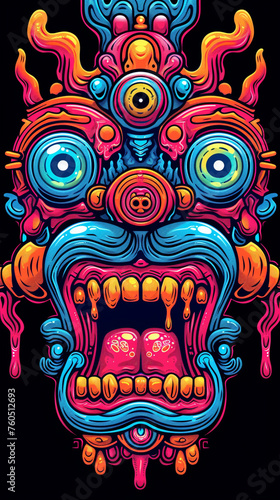 Psychodelic retro shape of a smiling cartoon сreated with Generative Ai
