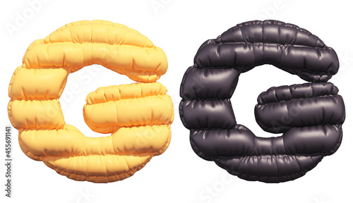 Puffer font. Yellow and Black. Letter G.