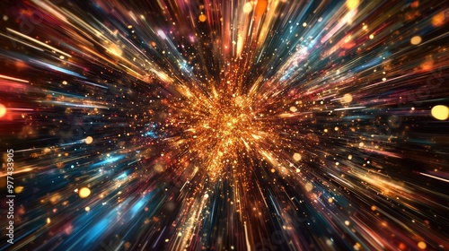 Pulsating beams of light forming radial patterns in an abstract starburst.