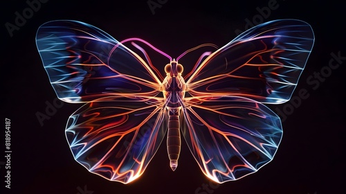 butterfly, neon, wing, light, hovering, dark, glow, vibrant, abstract, digital, surreal, graphic, futuristic, energy, motion, illumination, aethereal, luminescent, iridescent, kaleidoscopic, prismatic, aglow, dynamic, radiant, electric, hallucinogen, mesmerizing, hypnotic