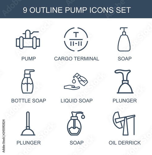 pump, icon, set, vector, cargo, terminal, soap, bottle, liquid, plunger, oil, derrick, isolated, illustration, symbol, background, clean, design, container, plastic, care, health, foam, signs, white, cosmetic, hair, bathe, cardboard box, shampoo, bathroom, cream, skin, gel, body, hygiene, pipe, equipment