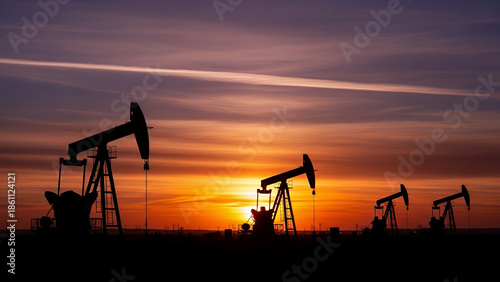 Pump Jack Oil Extraction Mining Machine at Petroleum Fosil Fuel Energy Crude Oil Mining Field Industry Photo