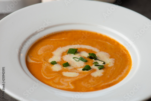 pumpkin soup with spices on table
