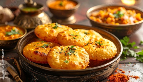 Puri Bhaji Morning Meal. Traditional Indian Food