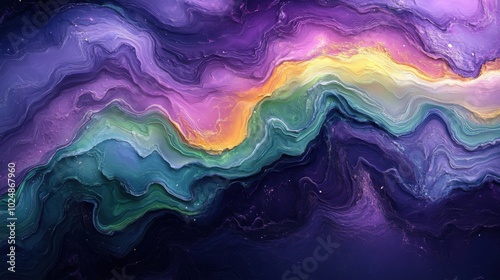 purple, green, fluid, painting, yellow line, abstract, vibrant, colourful, modern, contemporary, art, acrylic, canvas, swirling, dynamic, flowing, movement, texture, gradient, blend, swirl, pattern, design, creativity, concept, idea, unique, original, expressive, artistic, fluidity, soothing, organic, whimsical, fun, energetic, bold, contrast