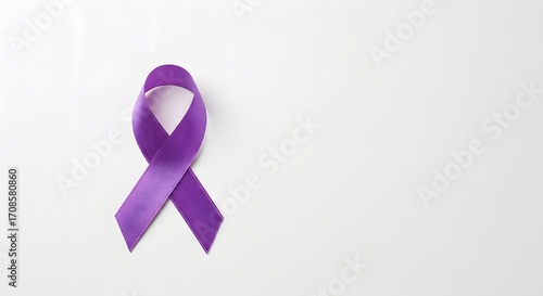 Purple awareness ribbon isolated on a white background. A symbol of support, hope, and solidarity for various health campaigns and causes