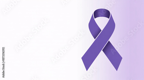 Purple awareness ribbon on light purple background symbolizing support