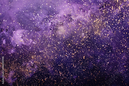 Purple background filled with various stars like light blue, white, pink and yellow ones, starlight shining, star dust floating, creating a dreamy and magical starry scene.