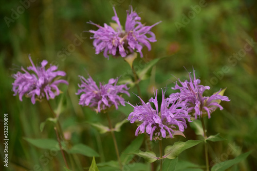 Purple Bee Balm Flowering and Blooming in Nature