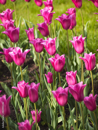 tulip, flower, freshness, garden, gardening, green, background, beautiful, beauty, bloom, blooming, blossom, botany, bouquet, bright, colours, decoration, decorative, flora, floral, love, natural, nature, nobody, organic, photosynthesis, plant, romantic, smell, spa, spring, summer, sun, sunny, high-coloured, magenta