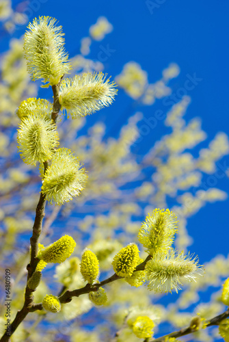 Pussy-willow branches against the blue sky
