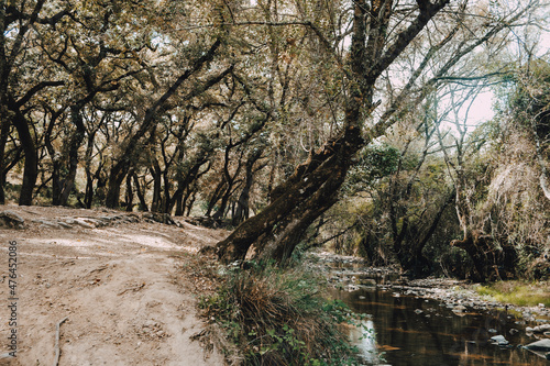 Quercus - cork tree - pathway in Portugal with small river
