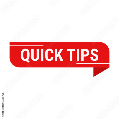 Quick Tips In Red Color And Rectangle Ribbon Shape With White Line For Advertisement