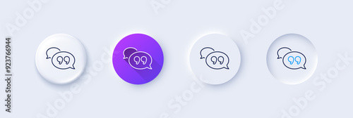 Quote bubble line icon. Neumorphic, Purple gradient, 3d pin buttons. Chat comment sign. Speech bubble symbol. Line icons. Neumorphic buttons with outline signs. Vector