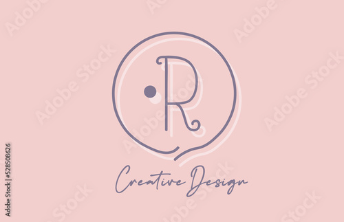 R alphabet letter logo icon design with line dot and vintage style. Pink blue creative template for business and company