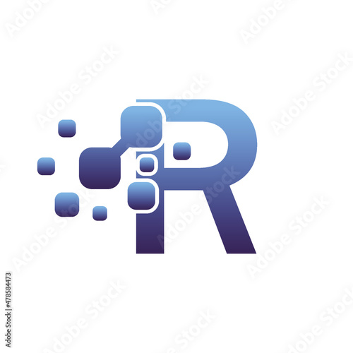 R Initial Letter Logo Design with Digital Pixels