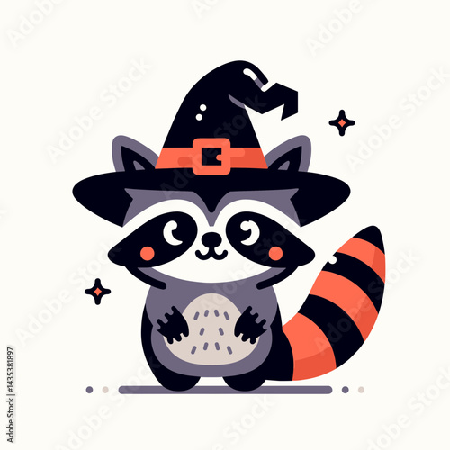 Raccoon wear witch hat in halloween silhouette creeps subtly under moonlight, embracing spooky season magic.