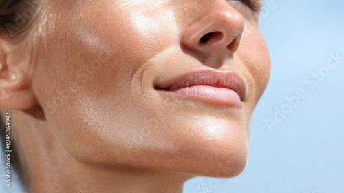 skin, closeup, sunlight, smooth, smile, radiant, cheek, texture, glow, healthy, portrait, complexion, natural, adult, feminine, lip, nose, profile, skincare, beauty, glossy, tan, detail, macro, aesthetic, confidence, wellness, moisturiser, cosmetic, grooming, well-being, serene, youthful, hydratation, skincare, sunlit